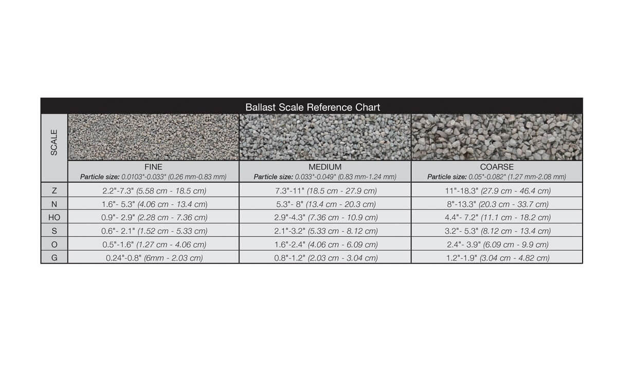 Realistically model railroad track, crushed rock and stones. Easy to use and colorfast. For any scale.Dark Brown Ballast Coarse Contains: 21.6 in3 (353 cm3)