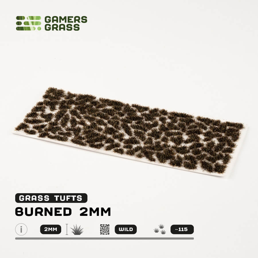 Low tufts with a very dark tone, perfect to simulate dark creeping grasses on burned fields, wastelands or eerie bogs. In combination with other colors and sizes they provide a fascinating color and height variation to your scenes.
