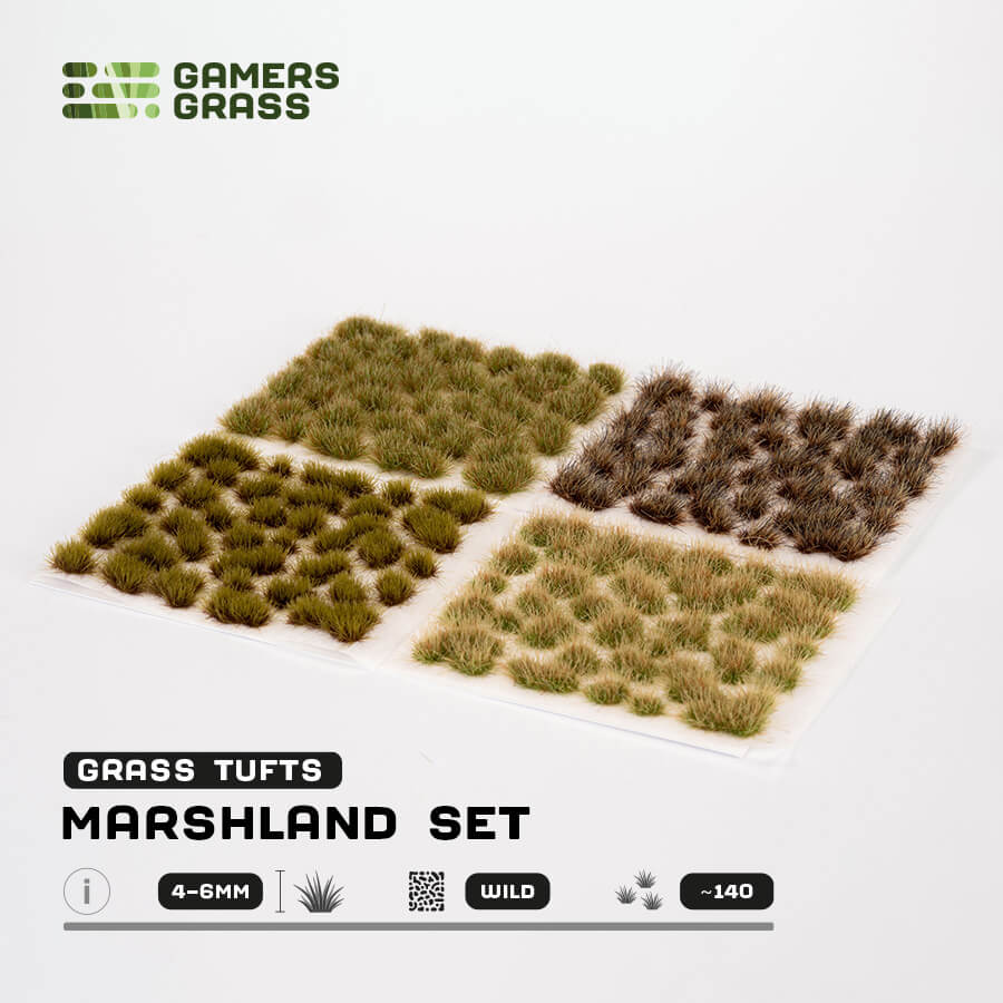 This colour set includes a diversity of tufts with green, brownish and light tips, with darker brown bases. They simulate waterlogged or sunless plants under shadow. Best used to recreate marsh and peat landscapes, or shadowy grasslands undergrowth dark forests and scrubs.