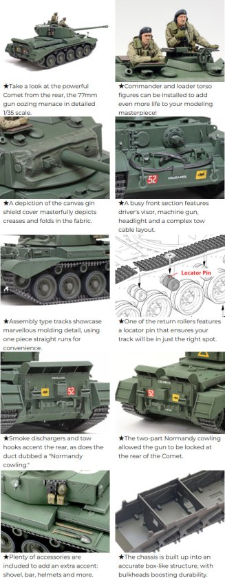 ★Extensive study of full-size Comets underpins this accurate rendering of the boxy hull with larger turret and 77mm gun.