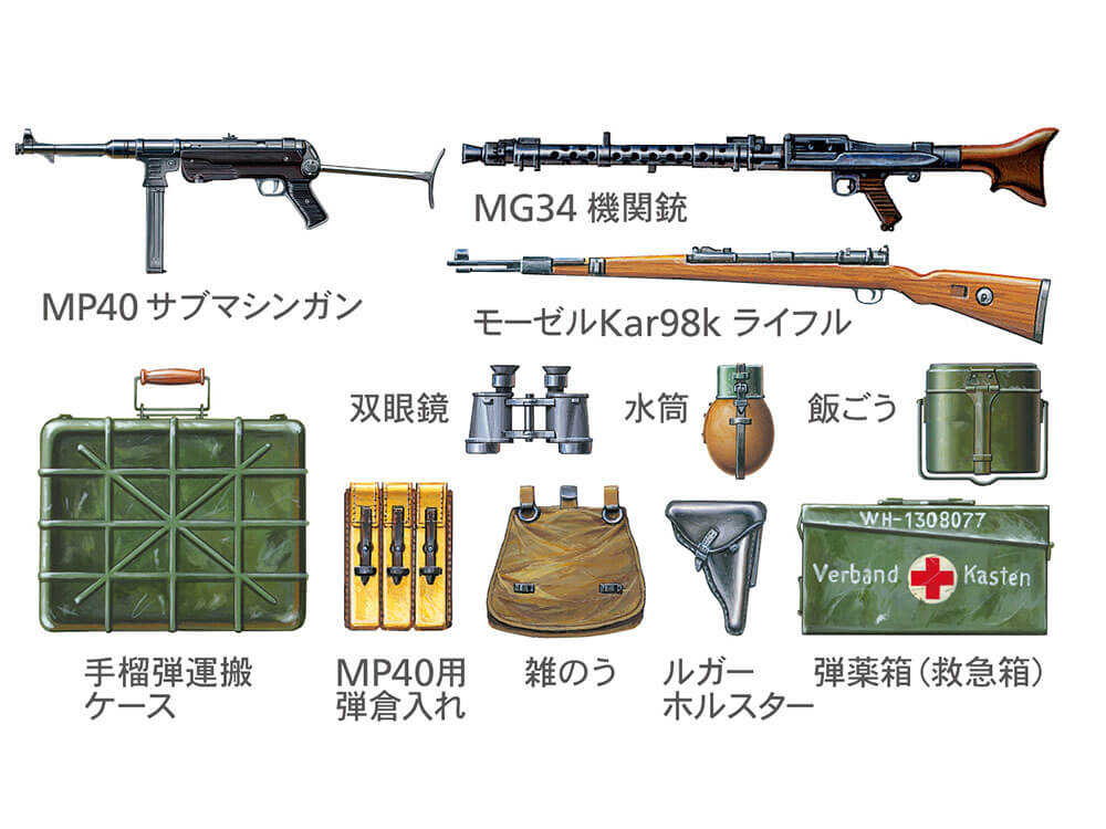 ★Also included are depictions of ammo cases, binoculars, grenade case, plus decals to recreate various Wehrmacht insignia.