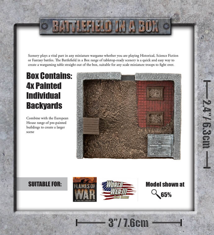 Four pre-painted Battlefield in a Box Backyards designed to be used in conjunction with the European buildings.