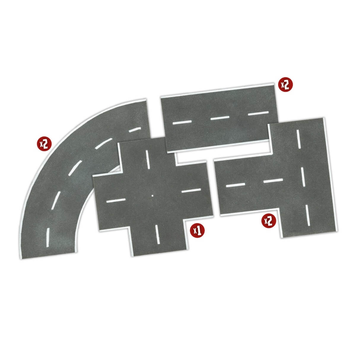 This expansion set allows you to add variety to your road network, with a selection of sharp curves and intersections.