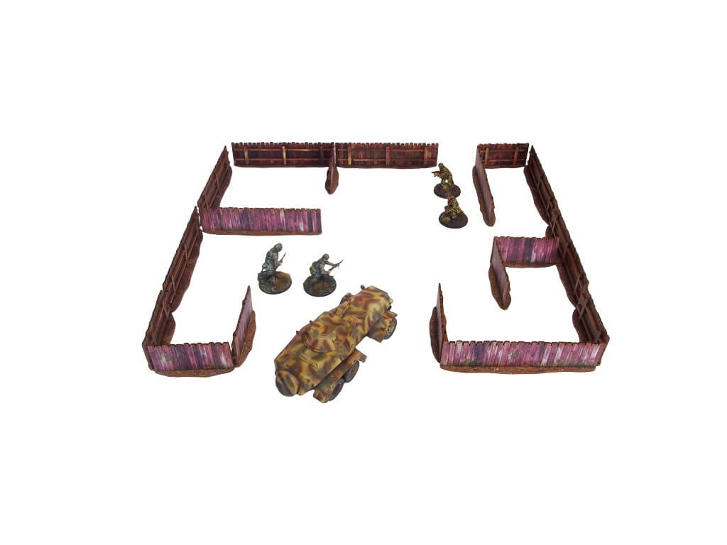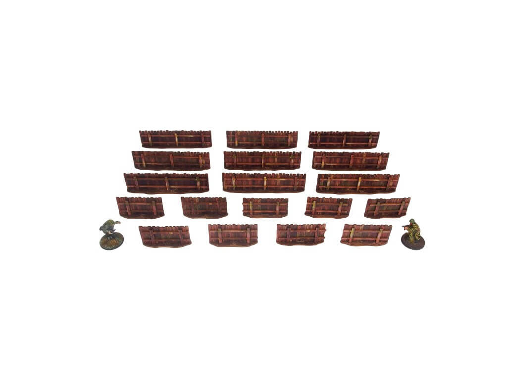 Multicolor prepainted (UV-printed) WW2 Ostfront (East Front) Low Fence (18) is a, 18-piece 1" high wooden barrier no eastern village house is complete without.