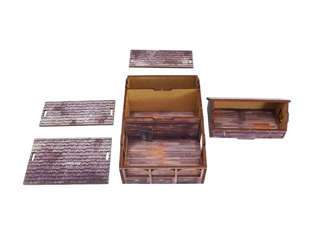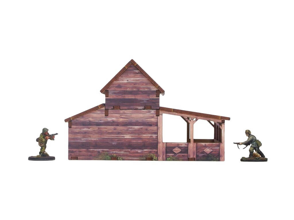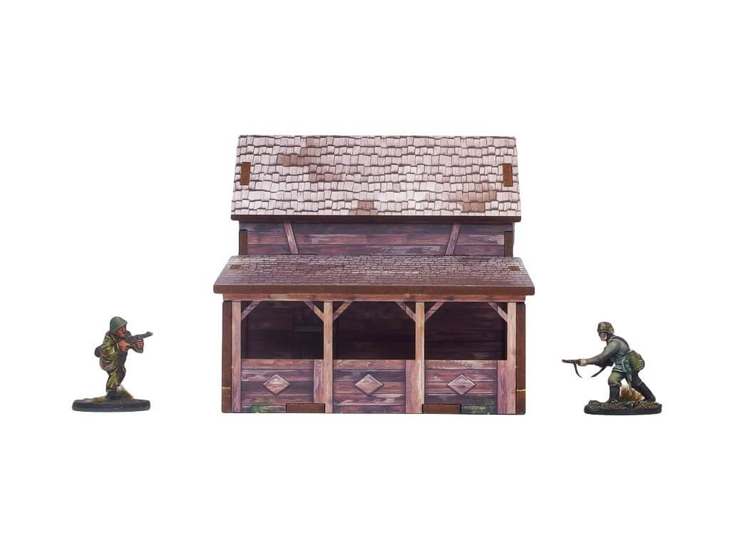 Multicolor prepainted (UV-printed) WW2 Ostfront (East Front) Village Workshop is a farm building with accessible interiors and removable roofs. Room to fit in a small infantry squad inside. Option to assemble with open or closed doors.