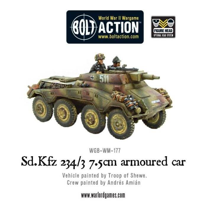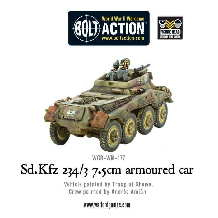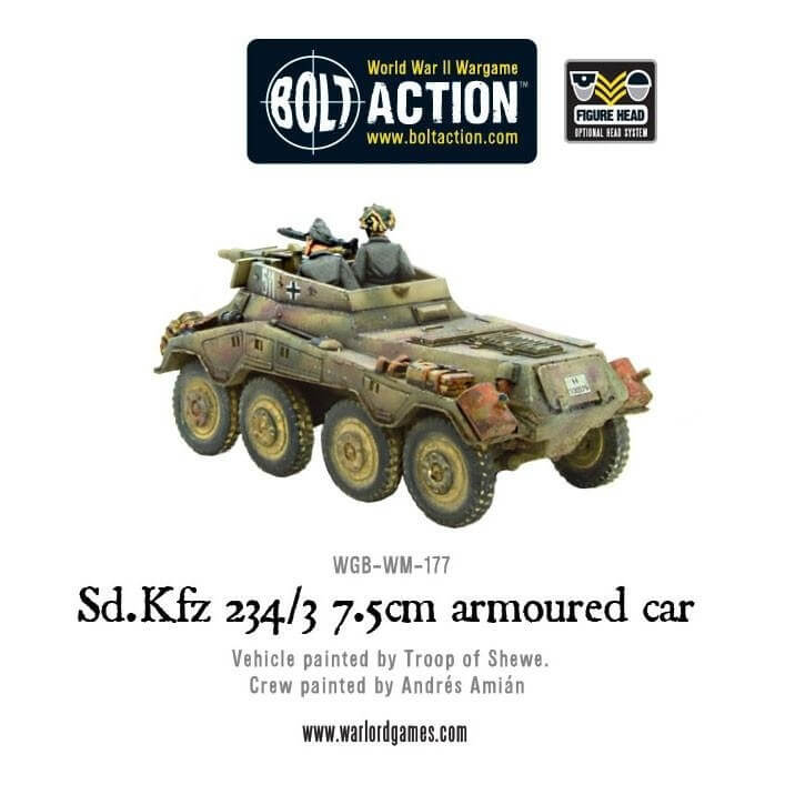 The Sd.Kfz 234/3, had an open-topped superstructure replacing the usual turret on the Sd.Kfz 234/1 and mounted a 75mm gun. Fielded by the German army in the latter years of the war, it’s manoeuvrability and potent gun was valuable addition to the Third Reich’s armies.