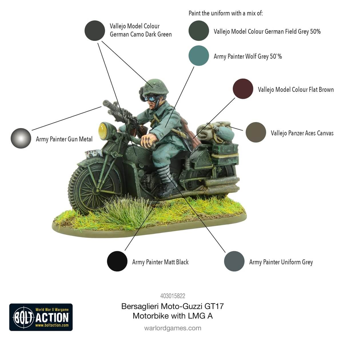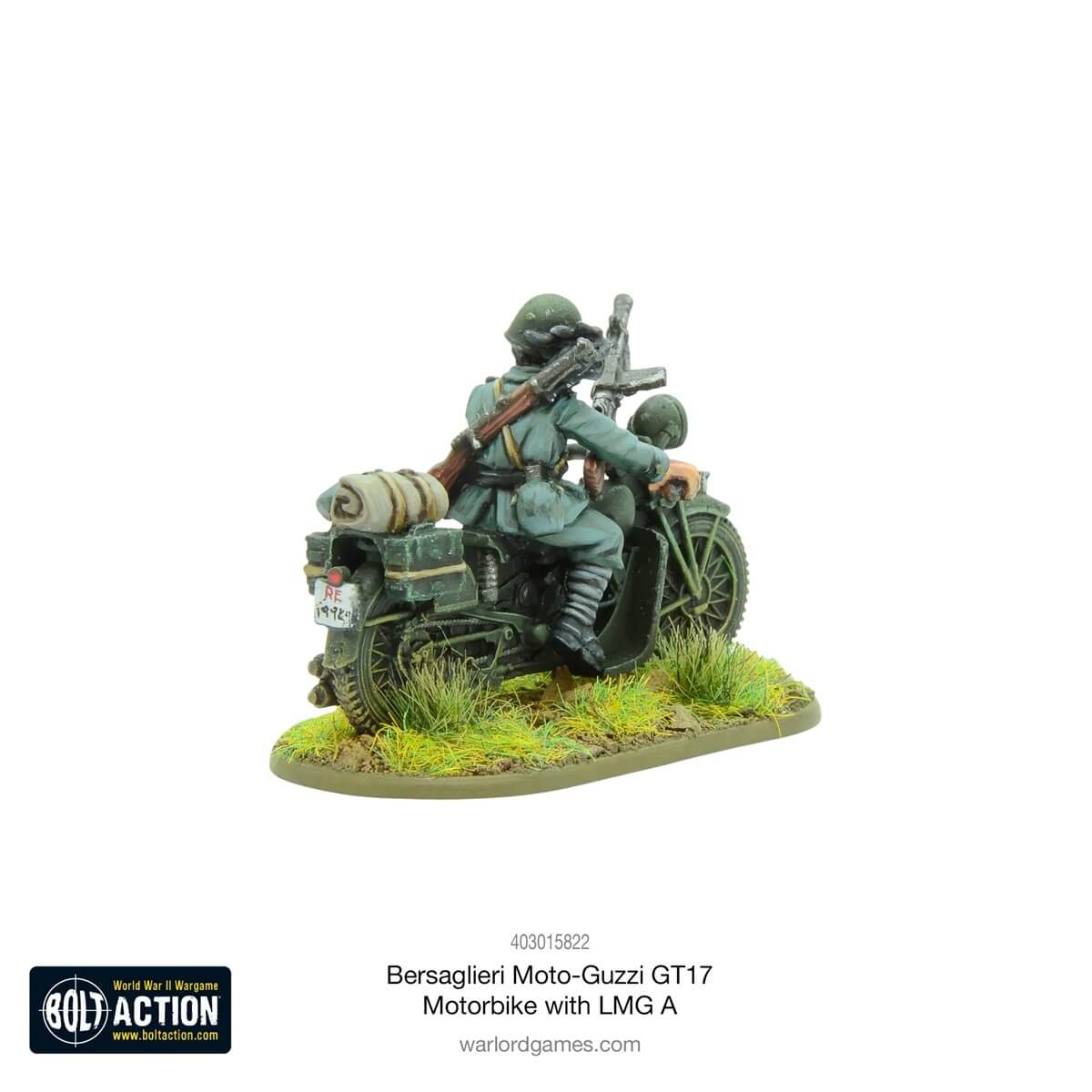 The Bersaglieri of WWII no longer travelled solely on foot as their Great War counterparts did, instead being equipped with trucks and motorcycles. Each of the twelve Bersaglieri regiments had one motorcycle mounted battalion. Six of these regiments served extensively in Africa between 1940 and 1943 with many victories to their name. Their most famous victory came during a joint Axis campaign against the US 1st Armored Division in which they played a pivotal role in capturing the Kasserine Pass in Tunisia.