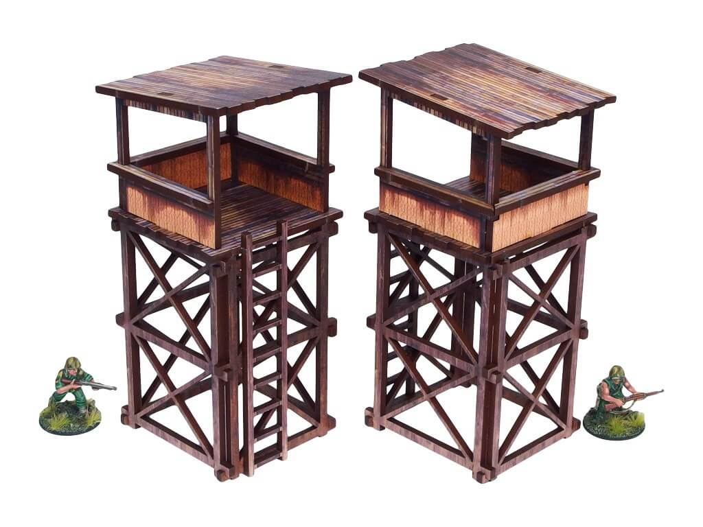 Multicolor prepainted (UV-printed) WW2 Pacific Guard Towers (2) are 2 elevated watchtowers with a ladder, pefect to represent common South East Asia and Oceania architecture of 20th century.