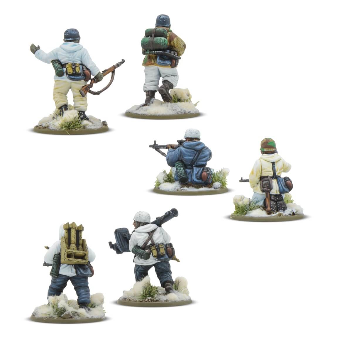 This box provides you with three infantry weapons teams to reinforce your Bolt Action Fallschirmjäger collection, all clad in thick winter kit. A lethal Panzerschreck anti-tank launcher menaces Allied armour, while a flamethrower team, the backbone of Engineer Platoons, stands ready to incinerate anything before them. Supporting both from afar is the sniper team, armed with a unique scoped variant of the FG 42 paratrooper’s rifle, the bane of enemy officers.
