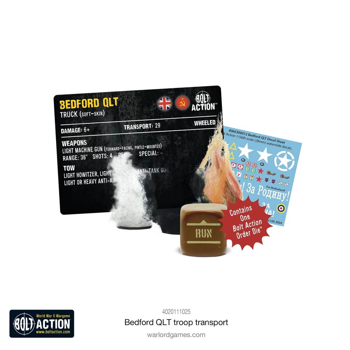 The troop transport version of the legendary Bedford QL series of lorries, the QLT was the iconic British truck of the Second World War, and these rugged, dependable vehicles would serve ably throughout the conflict. Unarmoured, with a simple canvas tilt to provide some protection from the elements, and capable of mounting a Bren gun for self-defence, these trusty workhorses would cover countless miles delivering troops and supplies wherever they were needed. No British Bolt Action collection is complete without at least one Bedford.