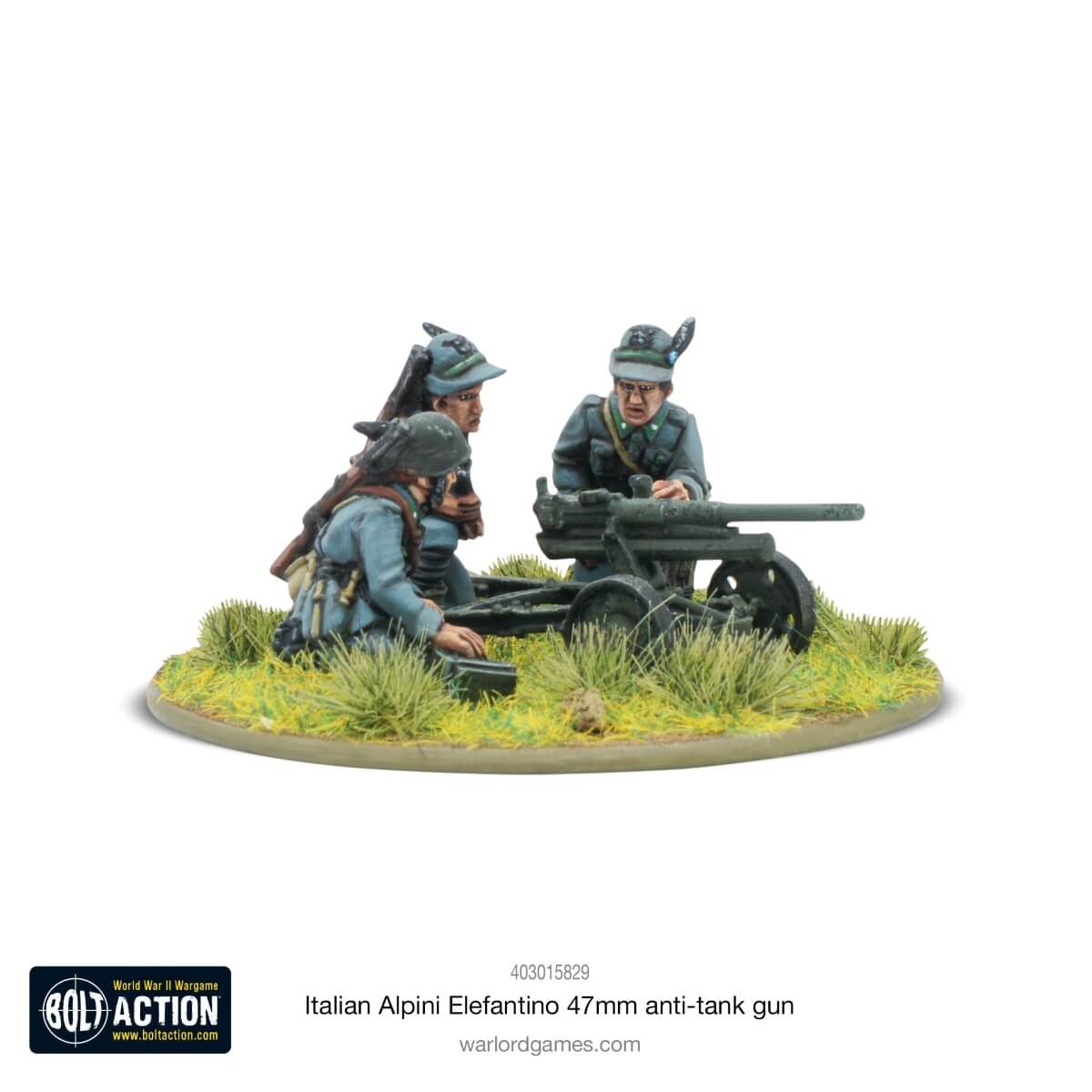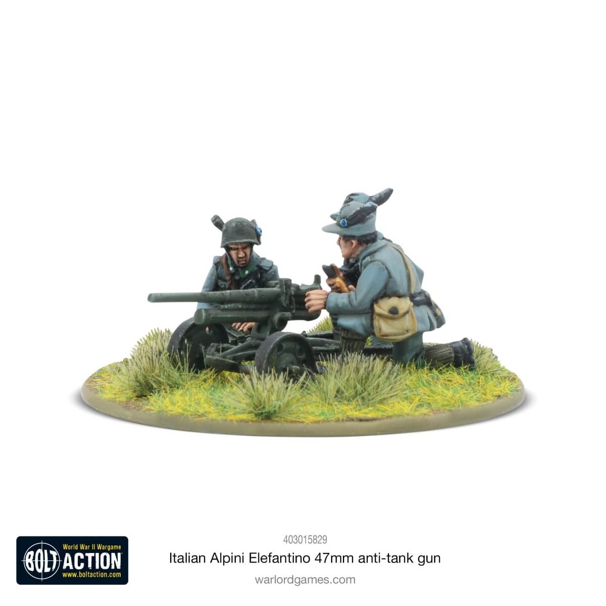 The Cannone da 47/32 mod. 1935, known as ‘Elefantino’ (‘little elephant’) by its crews for the tusk-like arc of its carriage, was a lightweight dual-purpose gun used throughout WWII by the Italian military, including the Alpini mountain troops. Often pulled by mule teams, it was effective against lighter armoured vehicles and in a direct-fire role against dug-in infantry, and could be effectively transported across truly rugged terrain when disassembled.