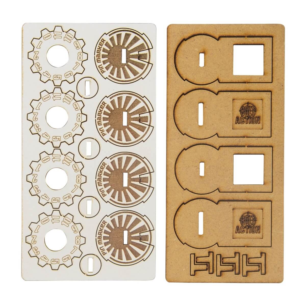 Pins are a key mechanic in Bolt Action, and you need to be able to track them for all of your units. Each one of these markers lets you track a unit’s pins, from 0 to 11, and store their Order Die securely at the same time, leaving your table uncluttered and your units’ status clear.