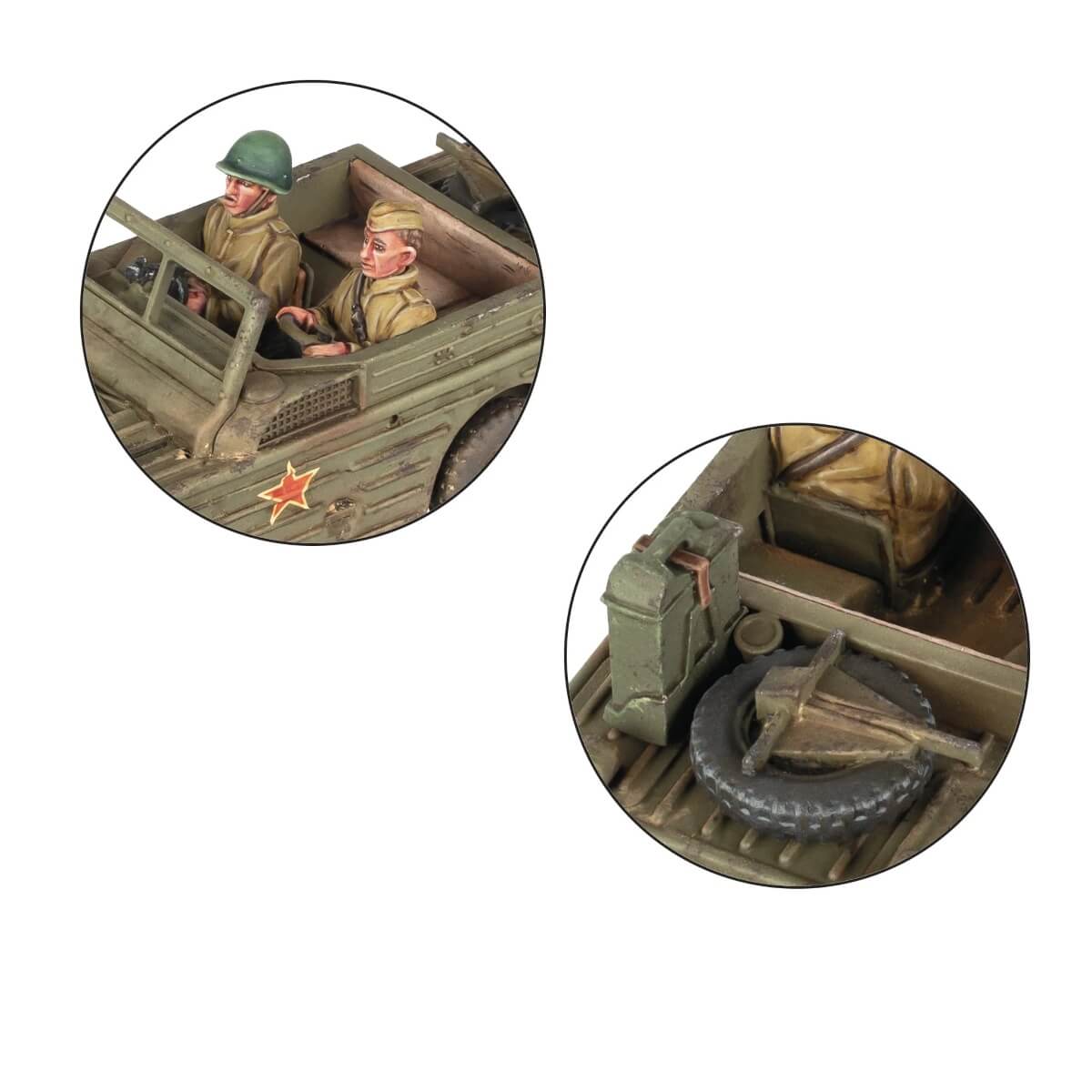 The GPA is a great choice for any Soviet Bolt Action force themed around an amphibious assault, or players with a fondness for slightly more unusual vehicles. On the tabletop, it’s simply represented by giving the standard Gaz Jeep the Amphibious special rule for no additional points cost. This allows it to take up to three men across water-filled obstacles, providing extra tactical mobility and looking great while doing it.